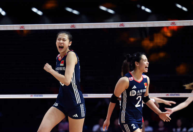 世界女排联赛王奥芊(左)令人眼前一亮——新华社图